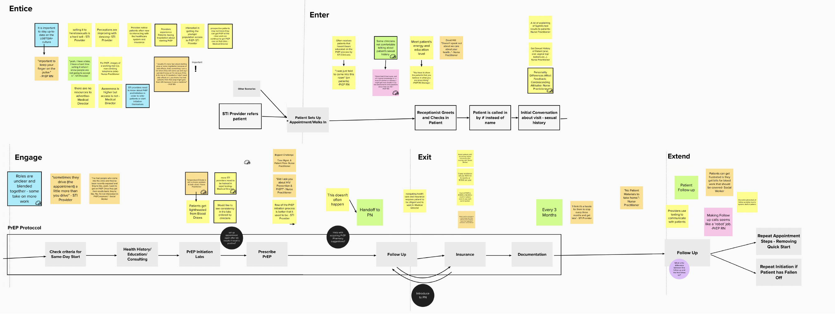 To aid our understanding, we created two journey maps. These maps followed the PrEP initiation process from STI clinicians to PrEP providers alongside their patients, grounding us in the project and creating a genuine connection between us and our stakeholders.